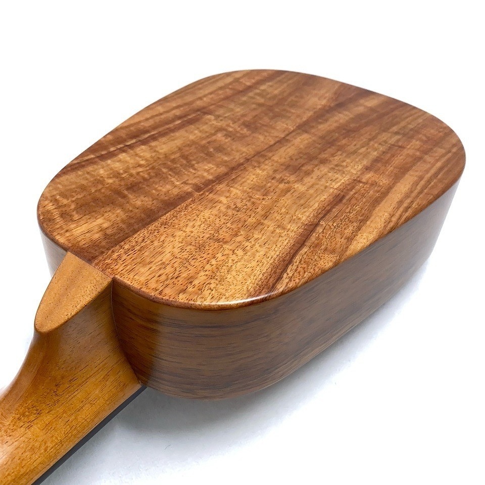 当モデルは"パイナップルシェイプ"であることによる外観の可愛らしさに加え、"ロングネック仕様"でもあることからソプラノモデルよりもフレット数が多く、ハイポジションを多用した幅広い楽曲や、より高い演奏性をお求めの方にオススメな、なかなか優れた1本でもあります。