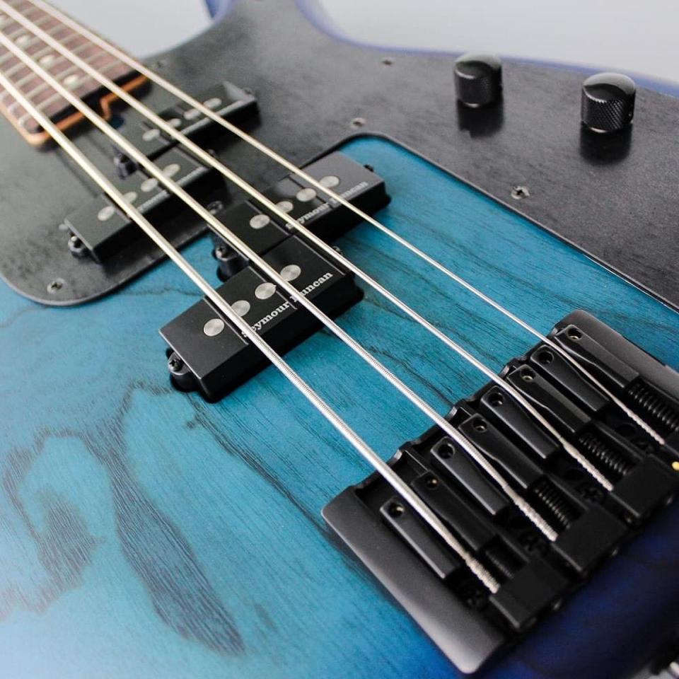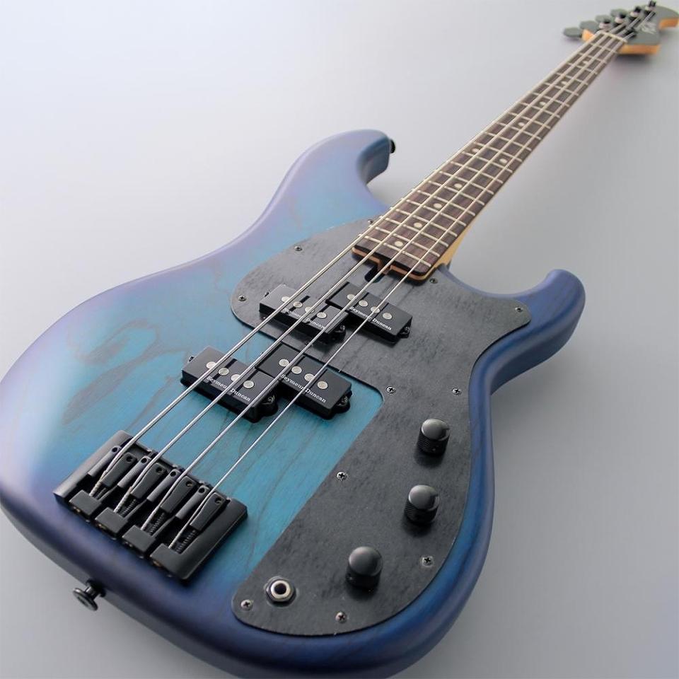 外観のオリジナリティとは打って変わって、そのサウンドはとことんまで正統派。主観ではありますが、エレキベースの良さが凝縮されたような密度の濃い、でもブーミー過ぎない音質です。検証を重ねてたどり着いたピックアップ位置、またセイモアダンカンのクォーターパウンドを採用することで、JBタイプの優等生なサウンドをそのまま太くしたような音色を実現します。