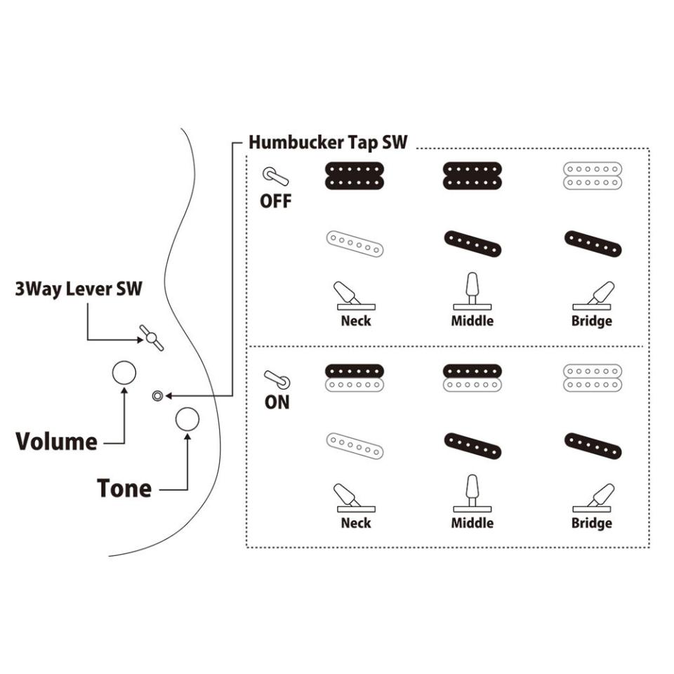 Controls:1Volume, 1Tone, 3Way Lever SW, Coil Tap Mini SW