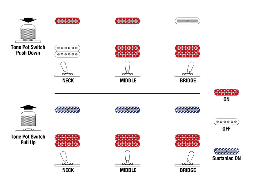 近年のJoeのサウンドを象徴する、SUSTAINIAC Driver ピックアップとSUSTAINIAC Stealth PRO プリアンプを搭載しています。