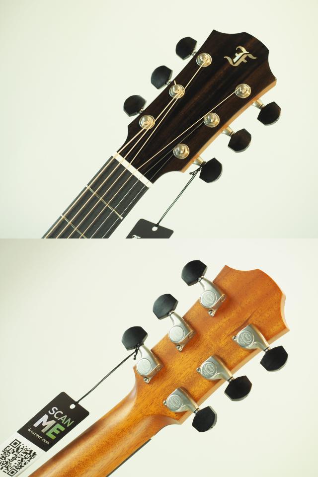 トップ材の密度を計測して最適な厚さに微調節することで、どの個体も均一なサウンドが得られるようにコントロールしています。また、順反り/逆反り両方に矯正力が働くダブルアクショントラスロッドや、トラスロッドを包むカーボン製のチューブと金属製ジョイントパーツをネックに内蔵し、ネックの剛性の向上や振動伝達を高める機構を備えます。さらに、CNR-System Active機構を備え、ネックの仕込み角度も専用工具を使用して調整が可能となっており、あらゆる面から効果的に個体差を低減するクオリティコントロールがなされています。他にも、世界最高水準の性能を誇る GOTOH 510 ペグの採用など、手に取る度に愛着と喜びを感じて頂けるはずです。