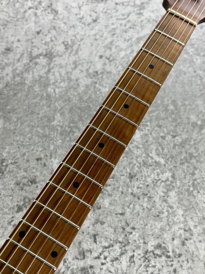ネックにローステッドメイプルを採用することで、ハイエンドモデルの様な雰囲気を醸し出しています。ネックとしての剛性が高いためトラブルが少なく、また音の立ち上がりが良いカラッとしたビンテージギターのようなトーンを生み出します。