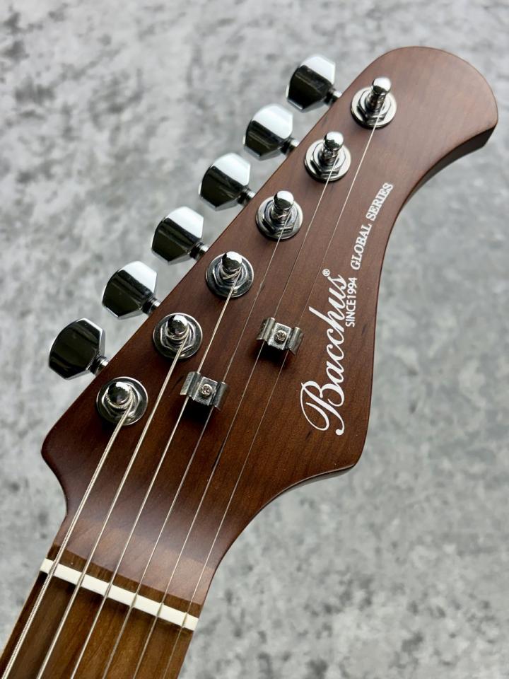 ローステッドメイプルとはメイプルを高温で加熱処理して材の中の水分や油分を揮発させることにより剛性を高めた材。ネックに使用されるとその効果は安定性だけでなくサウンドにも及び、豊かな生鳴りと経年変化したビンテージのようなこなれたトーンを生み出します。高級機種で使われることの多いこの本格派仕様をリーズナブルな価格帯に落とし込んだBacchusの新しい製品ラインナップです。