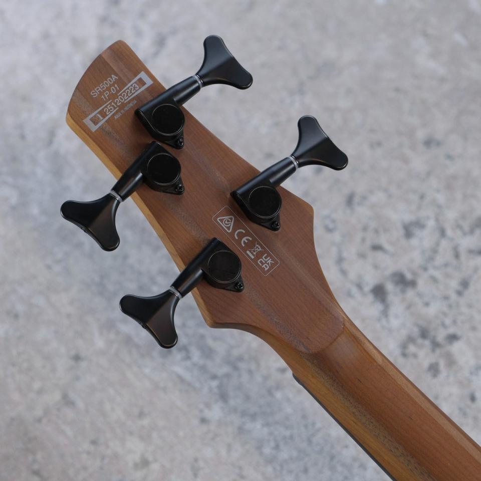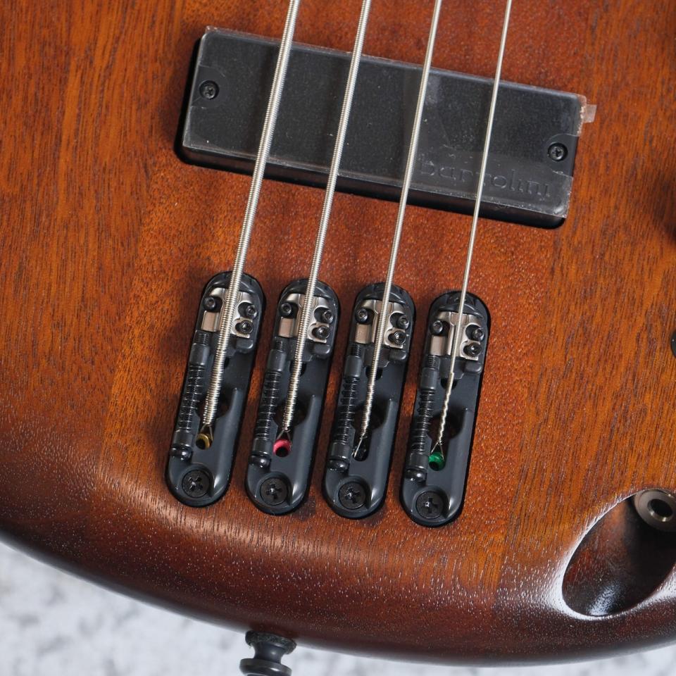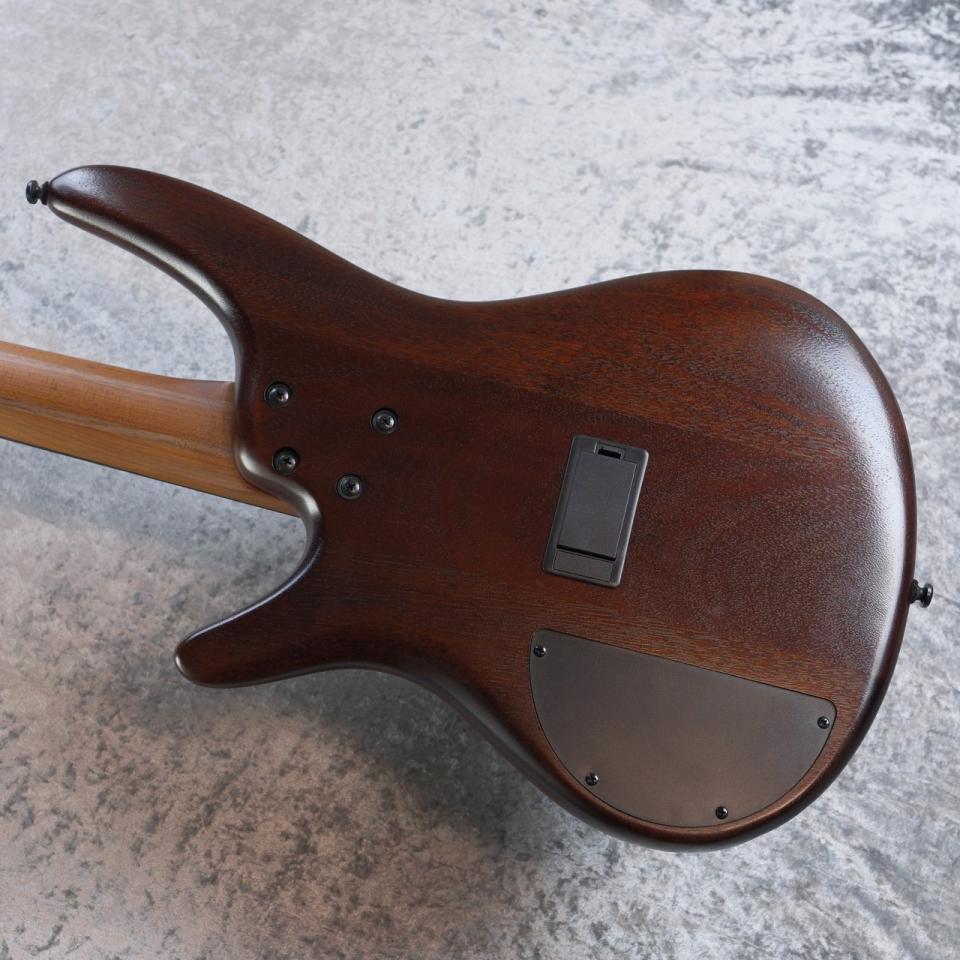 オクメ材を採用したボディに、ローステッドメイプルとウォルナット材のラミネート構造を採用したネック、ロースウッド指板と、スタンダードなベースと一線を画す木材構成を行われた本機は、IBANEZの魅力を体感できるモデルに仕上がっています。