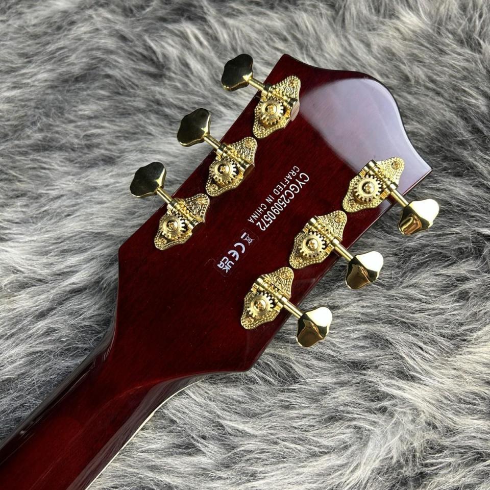 生き生きとした響きを提供するG5422TGは、トレブルブリードサーキットとマスターボリュームを含む、様々なアップグレードを施されたコントロール部を持ち、 マスタートーン、個々のピックアップボリュームコントロールと3ポジションピックアップトグルスイッチ、特大のバウンドFホール、マルチプライボディバインディング、バインディング加工された50年代後半の小ぶりな5G6120バウンドヘッドストック、ヴィンテージスタイルのオープンバックチューニングマシン、Graph Tech NuBoneナット、パーロイドのHump Blockインレイ、安定したAdjusto-Matic?ブリッジ、Bigsby B60ヴィブラートテールピースを備えています。