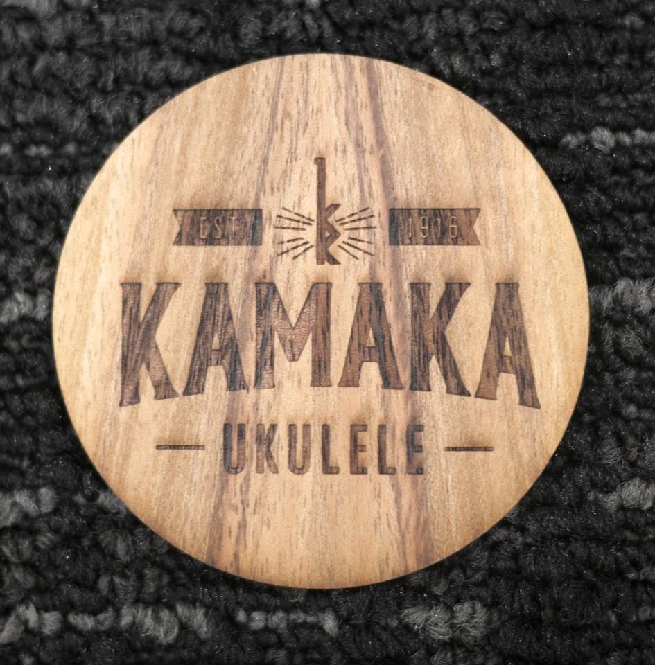 トップ材のサウンドホールをくり抜いた端材を加工したもので、ハワイ・ホノルルにあるカマカの工房を見学した人へお土産として渡されます。現地以外では手に入らない非売品で、ウクレレファン垂涎のアイテムです。