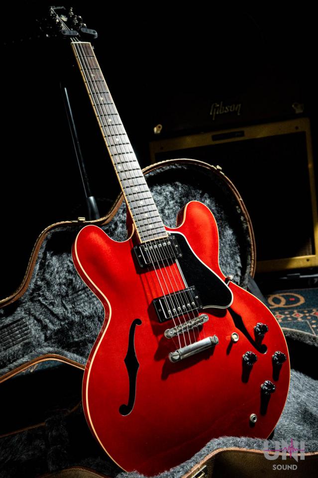 もはやセミアコの代名詞ともいえるES-335、335といえばやはりこのドットインレイでチェリーのモデルを真っ先に思い浮かべますね。