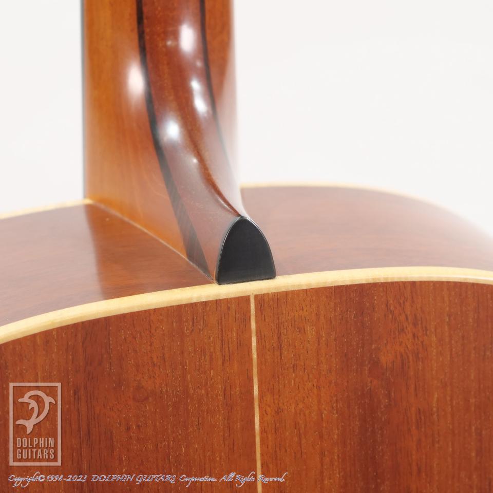 Oサイズが持つ特有の低域の深み、シダートップのレスポンスの良さ、キューバンマホガニーの分厚いローミッドなどなど、ある意味、究極のフィンガースタイル向けマホガニーギターとも言えます。スタンダードチューニングでもオープンチューニングでも素晴らしくマッチします。