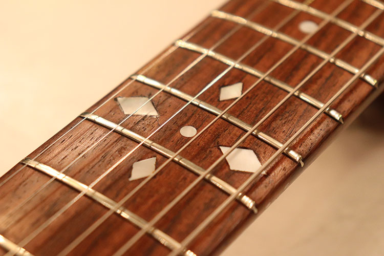 ネックにもホンジュラス・マホガニー、指板にはインディアン・ローズウッドを採用し、少し特殊なダブテイル・ジョイントを採用したネックセットを採用しています