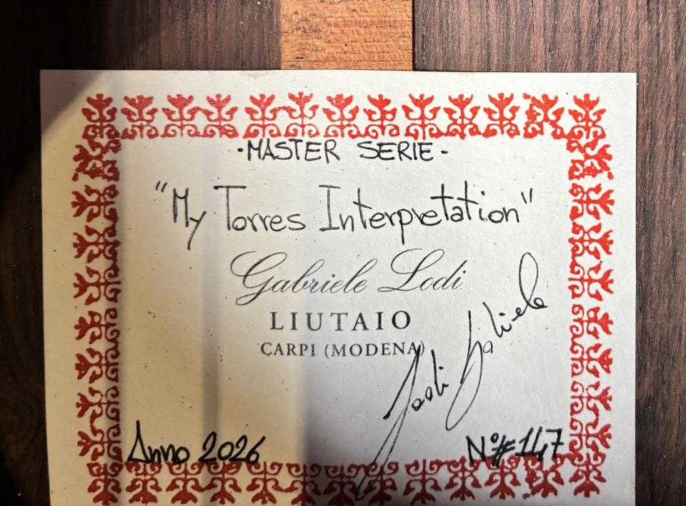 Gabriele Lodi MASTER SERIE トレースモデルを入荷しました。サイズは640mmです。ロディの中でもこのMaster Seriseは最上位モデルにあたります。世界的ギタリストのマルシン・ディラが使用しているのもこのトーレスモデルです。