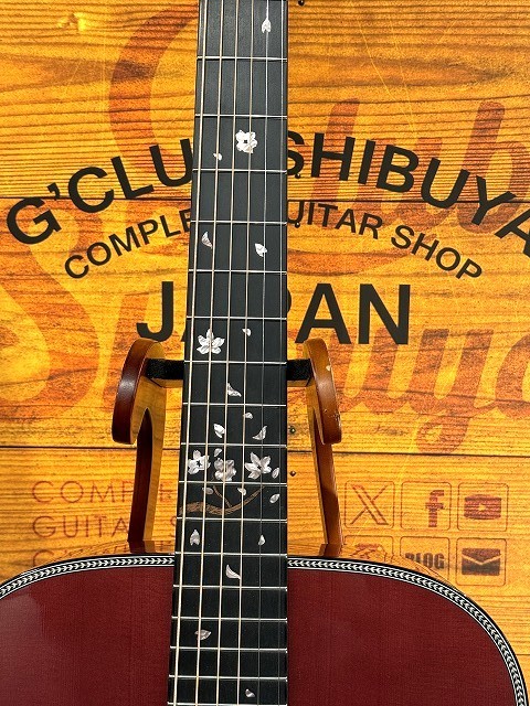 指板には貝や木材を駆使して表現された桜の木をデザインした豪華なインレイ。