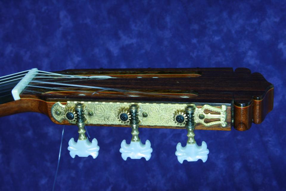 表面板はスプルース、横板・裏板はインディアンローズウッドで、弦長は650mmの一般的な仕様となっております。
