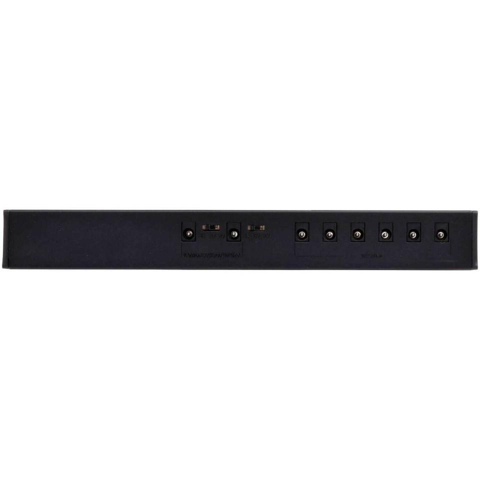 マルチエフェクターなどの専用アダプターを使用する機材を搭載したボードに便利なACコンセント出力×2系統を備えたマルチパワーサプライです。DC出力は2系統の切り替え(9V500mA,12V375mA,18V250mA)可能端子を含めた8portを装備し、グラウンドまで完全に個別にしたフルアイソレート回路を採用。Port3-8 は無負荷時供給電圧を約9.8V(最適環境下において)に、高負荷時でも9.4Vを確保出来るよう設定。特にDistortionやOverdrive系のペダルで音に張りと厚みが生まれ、ブライトネスも上がる効果も期待できます。可能な限りコンパクトに設計 (W240×D54×H30mm)し、ボード内のスペース確保を目指しました。筐体自体を放熱板として使用する機構を採用しDC出力最大消費電力18W (※Wのおよその計算法としてV×Aとする)の容量を確保。マルチエフェクターなどを含む大型のメインボードで活躍するモデルです。