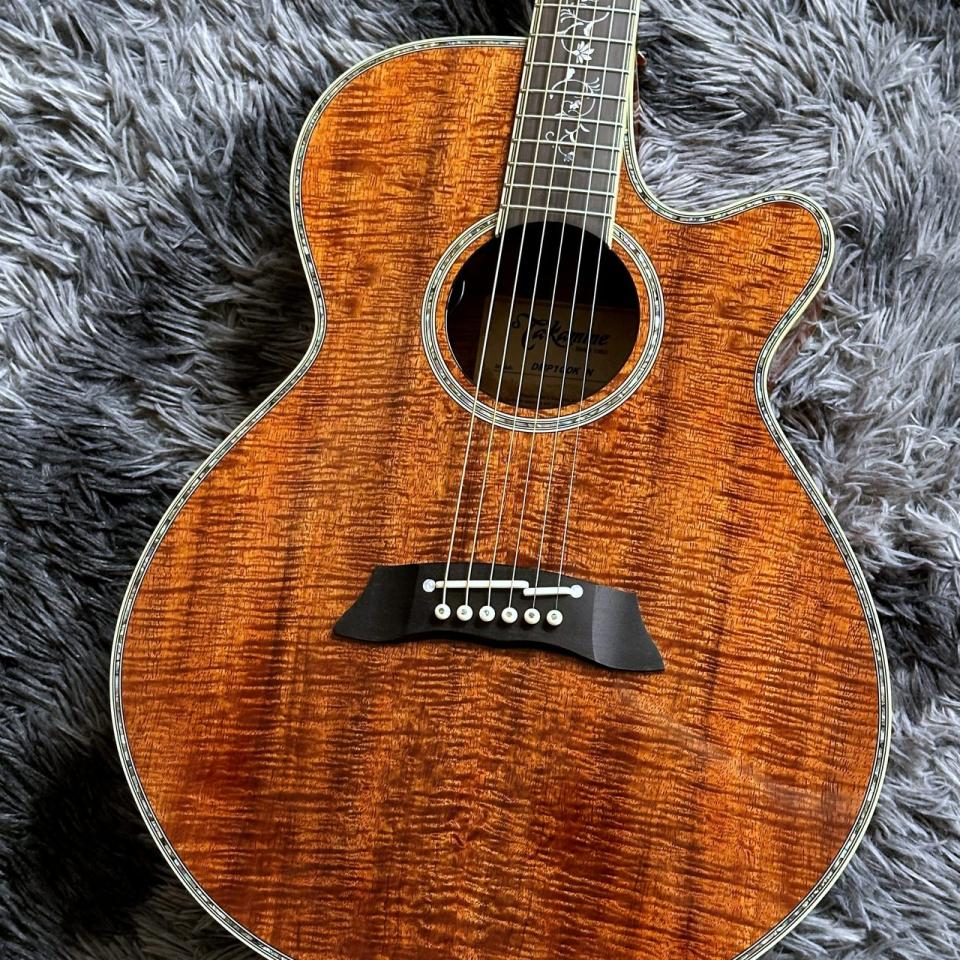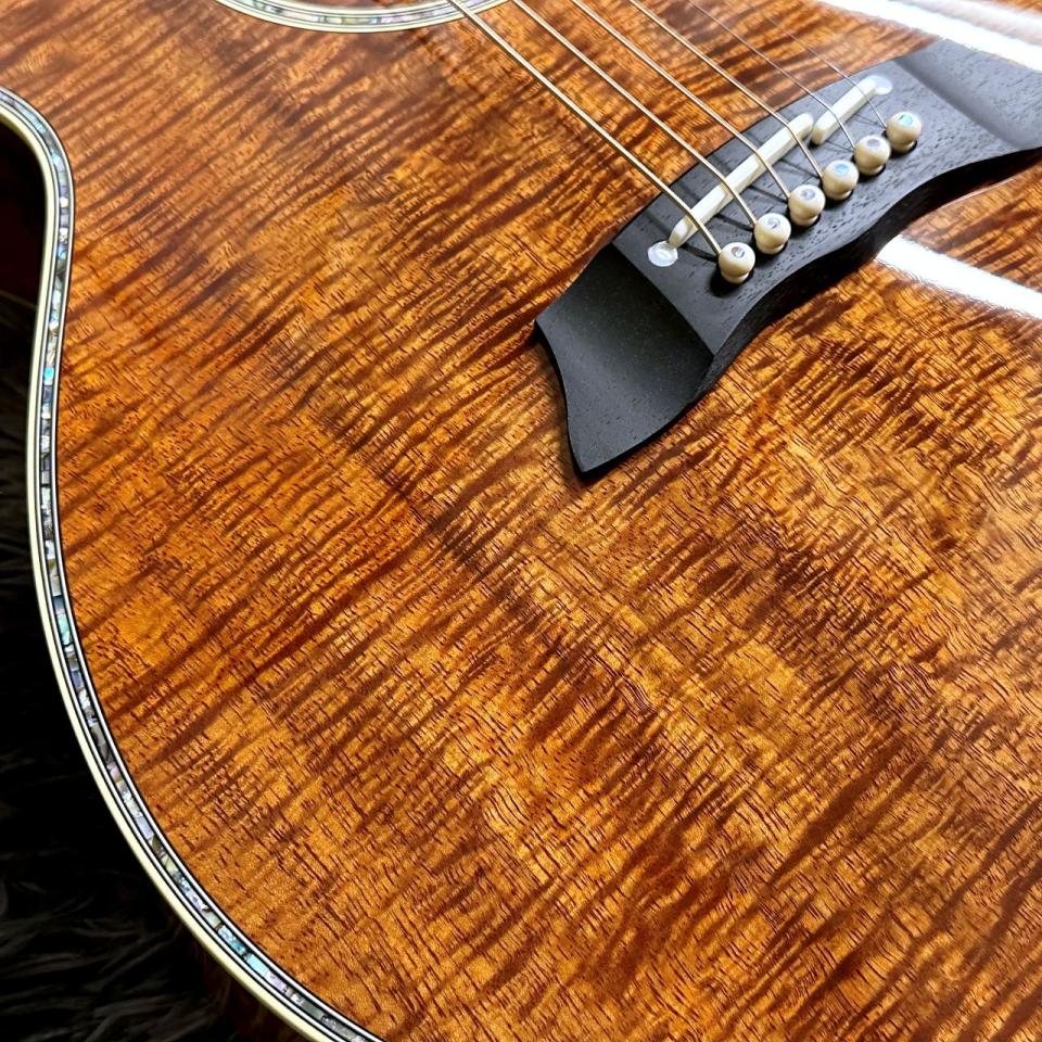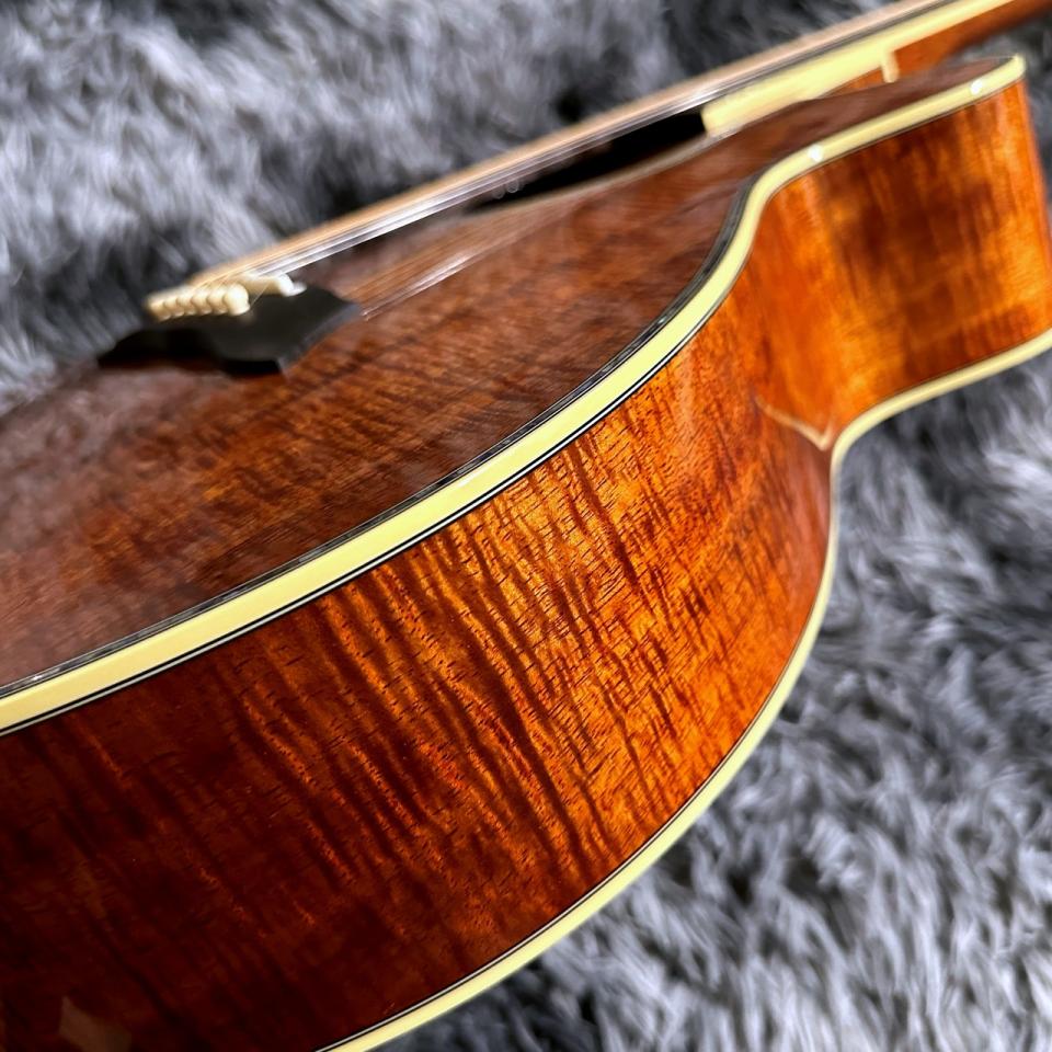 ゴージャスなハワイアンコアをボディに使用。トップとバックはアーチ状になっており、指板も芸術的なGRASS FLOWERインレイで埋め尽くされ、優美で高級感のあるルックスは圧巻です。