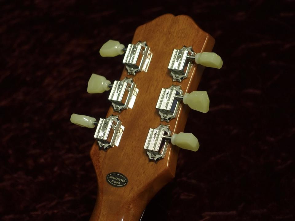 エピフォン・レスポール・スタンダード50sは、グロス仕上げのマホガニー・ボディにメイプルトップの材構成をもち、ロング・ネック・テノン仕様でジョイントされた50sシェイプ・マホガニー・ネック、クラシカルなディッシュ・インレイが施されたインディアン・ローレル指板、新開発のヴィンテージ・デラックス・チューナー、定評のあるエピフォンProBuckerハムバッカー、ダイヤル・ポインタ付きのゴールド・トップハット・ノブなど、充実の仕様群を誇ります。