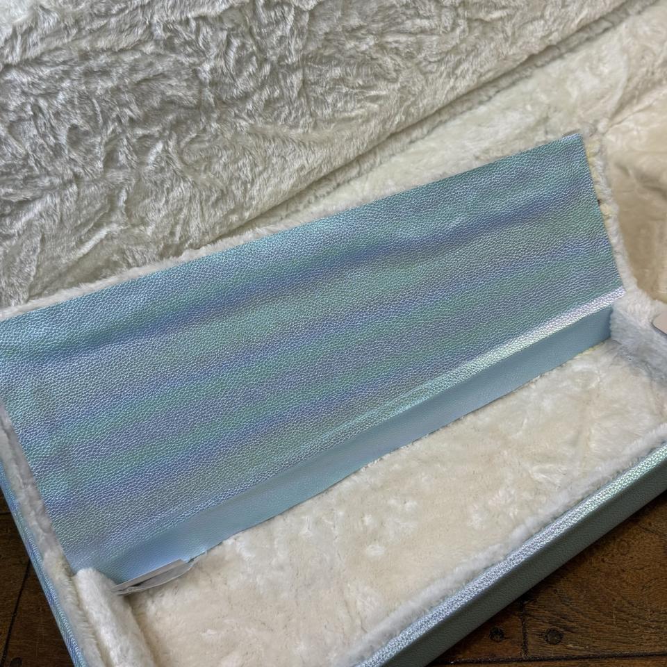 ・クリームクラッシュドアクリル“プードル”プラッシュ内装と、カバー付きアクセサリーコンパートメント