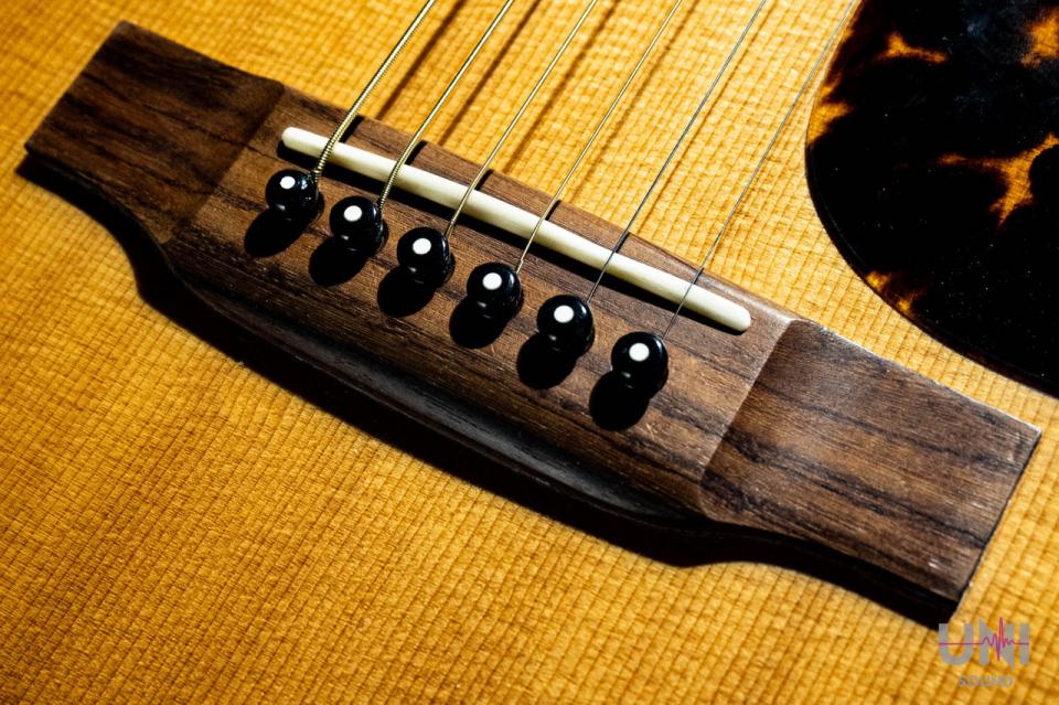 マホガニーバック、サイドなのでどちらかというと中域が強調されたサウンドに仕上がっております。