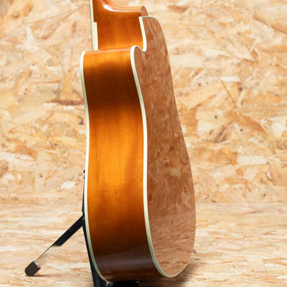 1960年の発売以来、ギブソンスクエアショルダーボディの定番モデルとして人気を博しているハミングバード。ハチドリを象ったピックガードを始め個性的なルックスを持ったモデルです。本器は新たにリリースされたカッタウェイ仕様のNEWモデル”Hummingbird Standard EC”。シトカスプルーストップ、マホガニーサイド&バック、マホガニーネック、ローズウッド指板&ブリッジL.R.Baggs Element VTCピックアップシステム標準内蔵。カッタウェイによりハイポジションへの演奏性も向上し、リードやフィンガープレイなどより幅広い演奏スタイルでお使いが頂けます。倍音成分に富んだサウンドはハニートーンと称され、穏やかに広がるブライトな音色は多くのアーティストに支持されておりストロークプレーからアルペジオまで万遍なくお使いいただけます。音色の扱いやすさはもちろんトレードマークでもあるハチドリ模様の入ったピックガードはステージで映えること間違いなしの人気機種。L.R.Baggs Element VTCピックアップが搭載されていることによりステージやレコーディングでも柔軟に対応いただけます。プレイ性が向上しよりオールラウンドにお使い頂けるNEWハミングバードです。