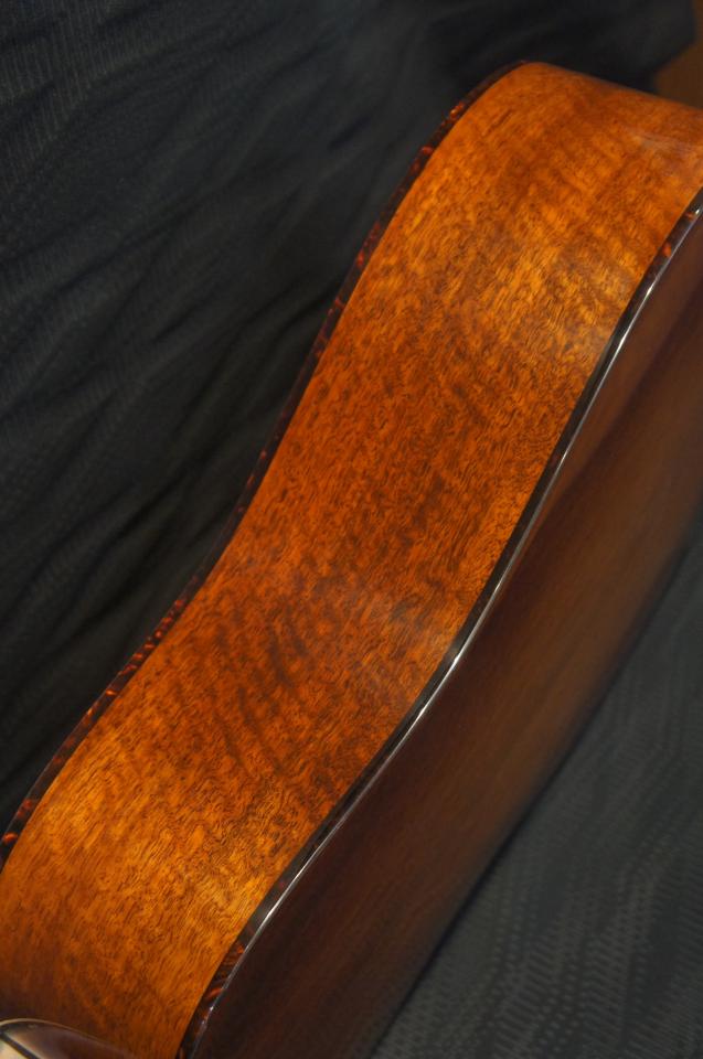 サイドバック材には非常に美しいフィギュアードのマホガニーを使用した、見た目もとても美しいモデルです。