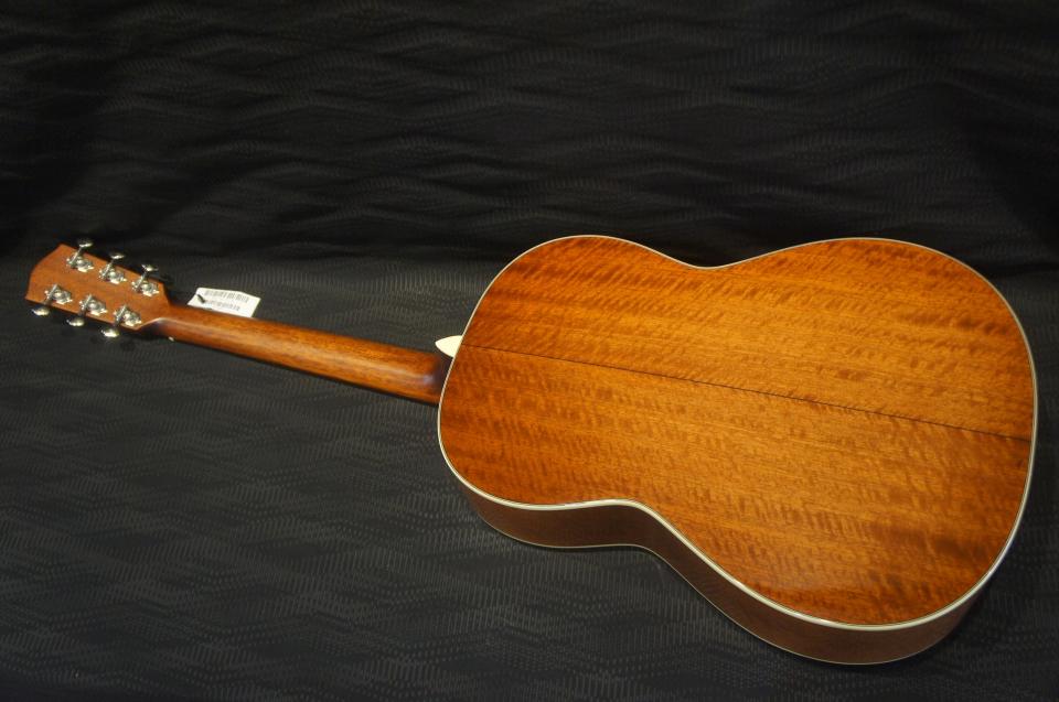 サイドバックにはフレイム杢目の出たマホガニー単板を使用!