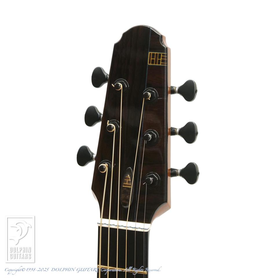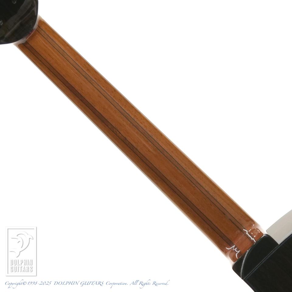 エキゾチックな杢目が魅力的なジリコーテのボディは、しっかりとしたハリがありながらも、決して硬くはなく、腰のある甘いトーンが特徴です。ヨーロピアンギターならではなメロウなサウンドはやはりフィンガースタイルに於いて真価を発揮してくれそうです。