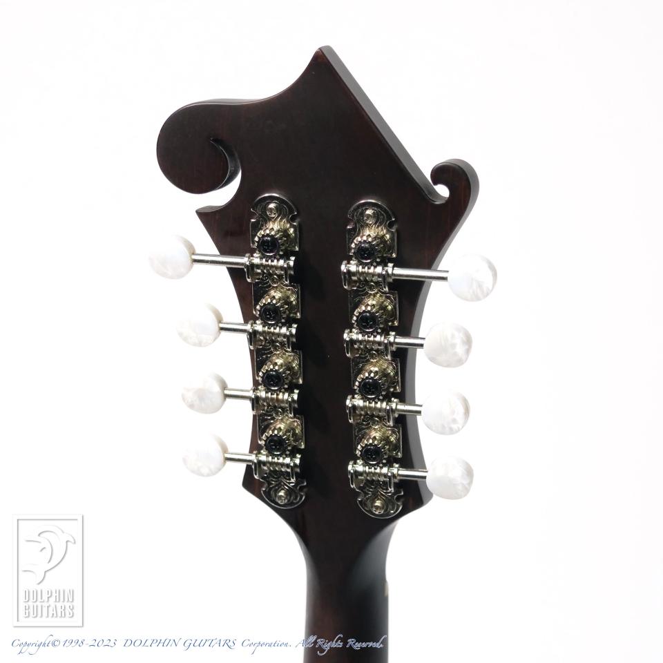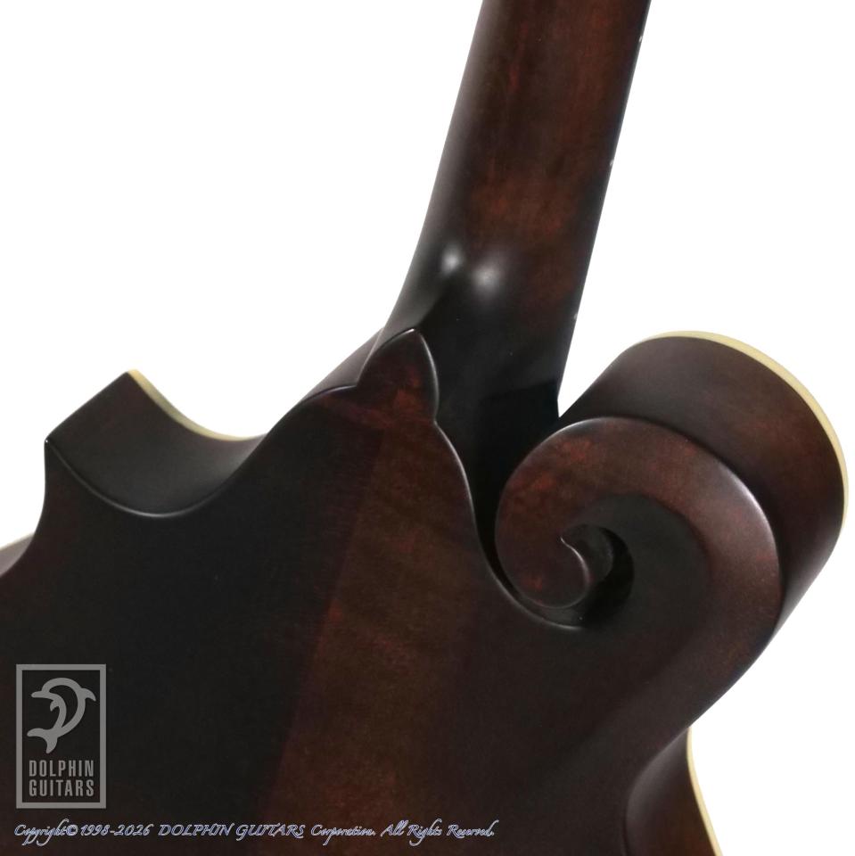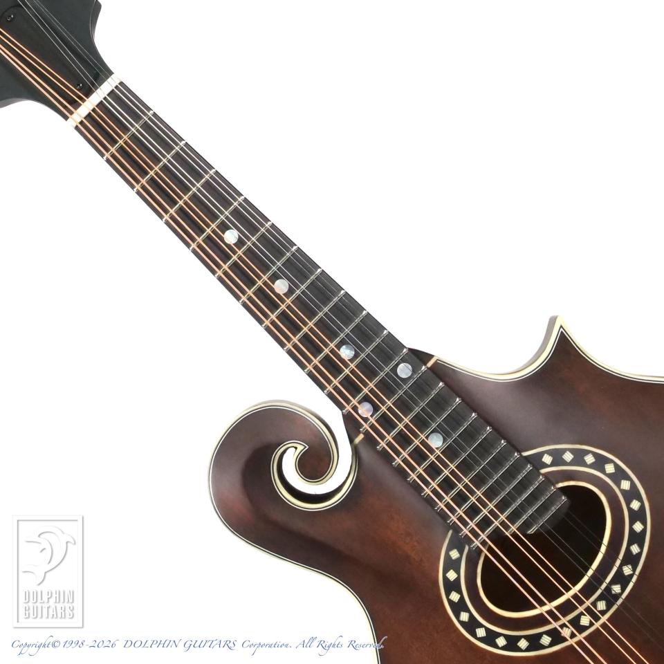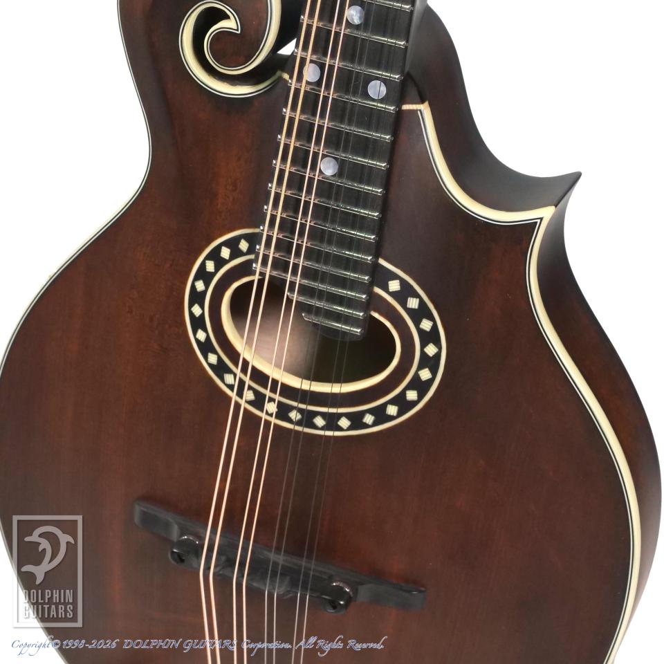 デザインは、GIBSONのF-2あたりがモチーフになっていると思われます。柔らかいトーンが特徴のオーバルホール系マンドリンの中でも、適度にタイトさも感じられるモデルで、ジャズやブルース、ポップス等に威力を発揮しそうです。
