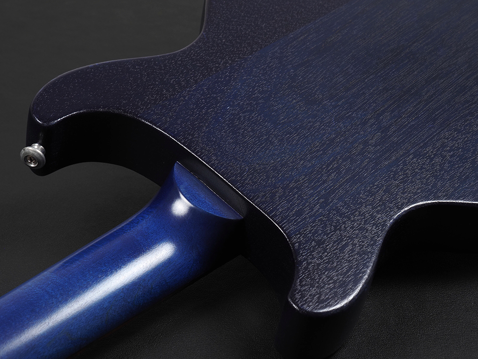 Blue Satinフィニッシュは、マホガニー材の質感を活かした落ち着きのある仕上がり。サテンならではのさらりとした手触りと相まって、シンプルながらも個性を感じさせるルックスとなっており、ステージでも映える魅力的な印象を与えます。