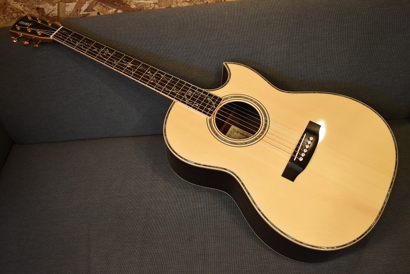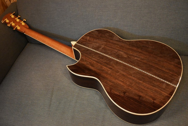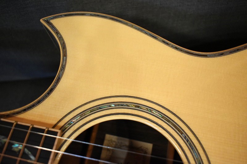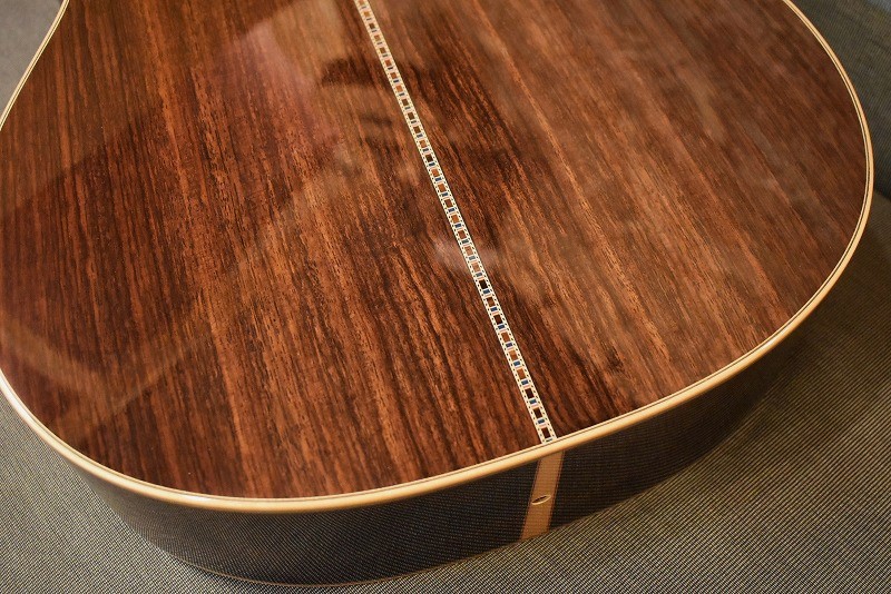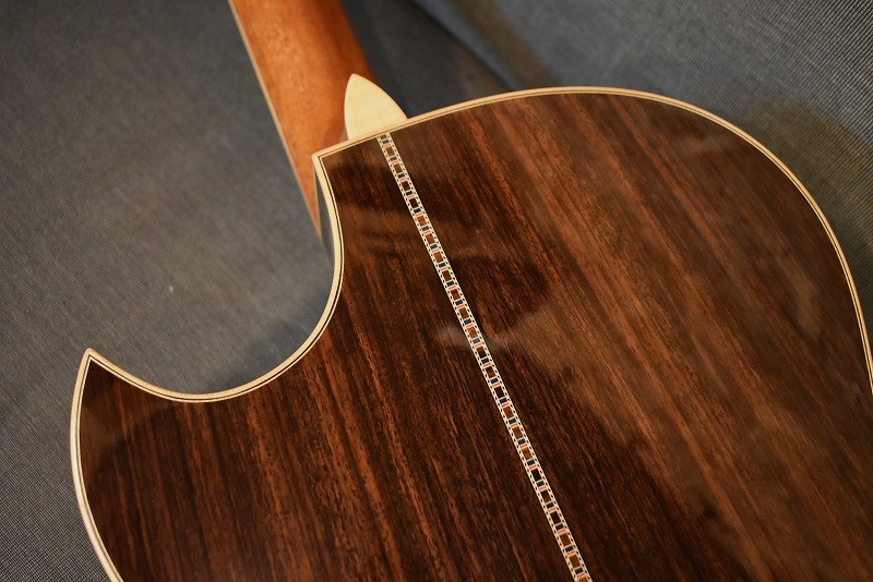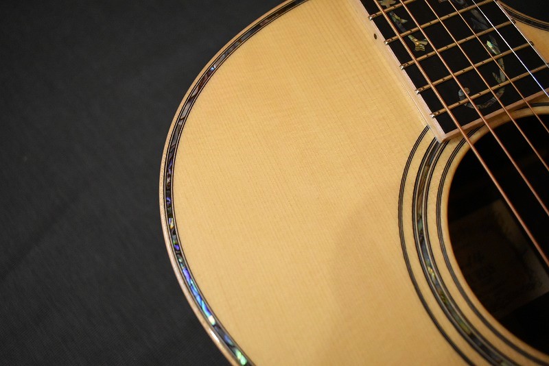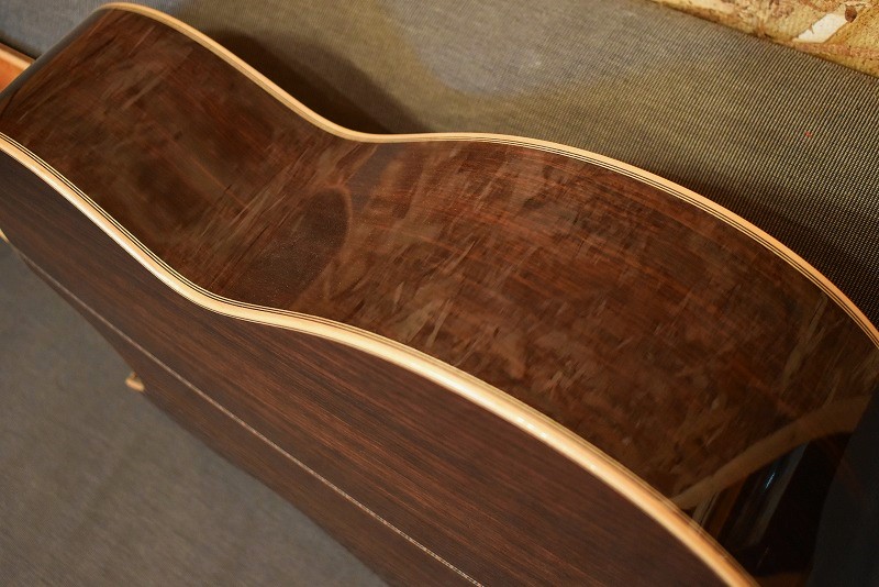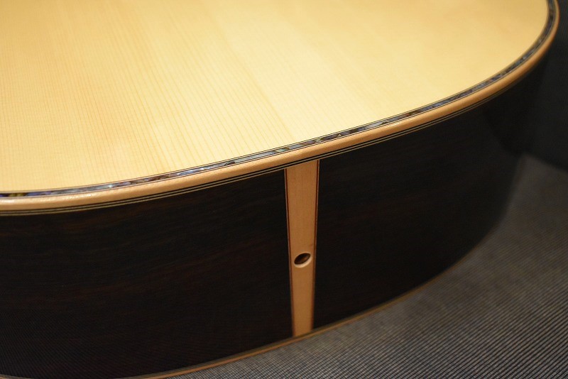 トップジャーマンスプルースは白く美しく、サイド&バックのローズウッドも杢目の綺麗な本機。