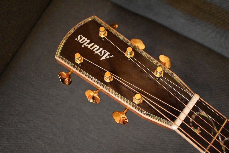 アストリアスオリジナルギターのフラッグシップモデルです。ヘッドトップメキシコ貝パーフリング、ボディトップメキシコ貝パーフリング/ロゼット使用。指板にも、“ツリーオブライフ”インレイを施した贅沢品です。