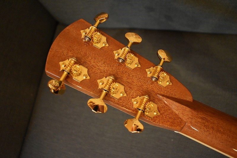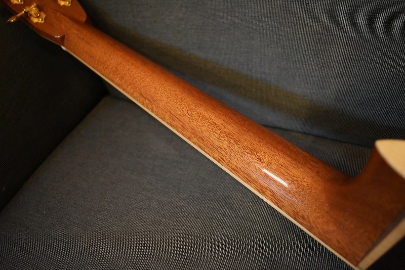 ネックは、マホガニーで、手彫りにより丁寧に仕上げられたボリュートも風格ある仕上がり。