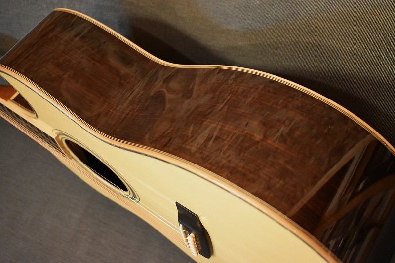 塗装表面板/ラッカー仕上げ 横・裏板/ウレタン仕上げとなっており、演奏者のことを考えて、トップはサウンド優先のラッカー、サイドバックは、体に触れる面積が多いため、耐久性も考えウレタン仕上げという仕様。
