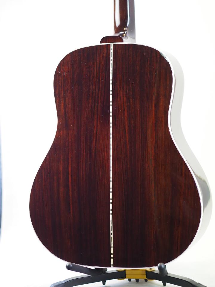 ボディは、AAAグレードのシトカスプルーストップに、ローズウッドサイド&バックの組み合わせ。低音寄りのバランスが力強さを感じさせ、高音域の艶感を伴ったクリアでワイドレンジな響きが魅力的です。弦を強くヒットした時の太鼓を鳴らしたかのようなパンチ力や、音の分離感や歯切れの良さは、ドレッドノートとは違う個性を感じます。