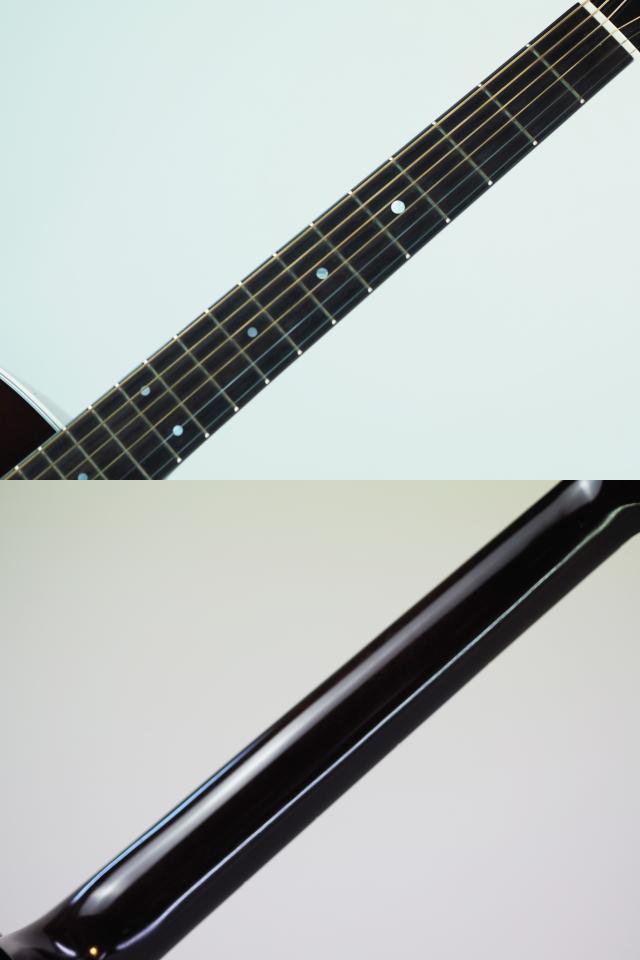 高精度を誇るGOTOH 510ペグや、エボニーの指板&ブリッジ、深みのあるサンバーストカラーとクリアピックガードなど、美しくまとめ上げられたデザインにも上質さを感じられます。