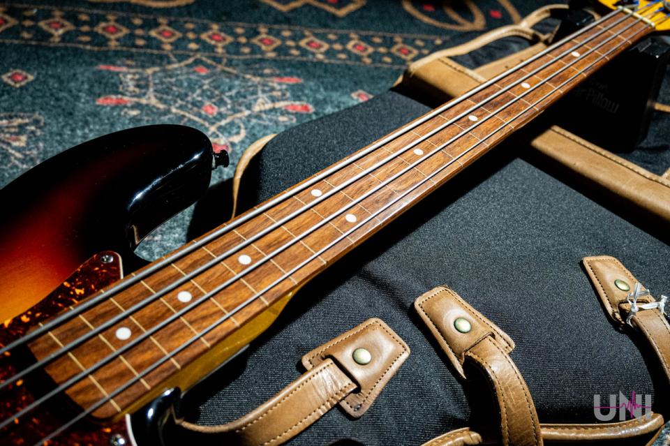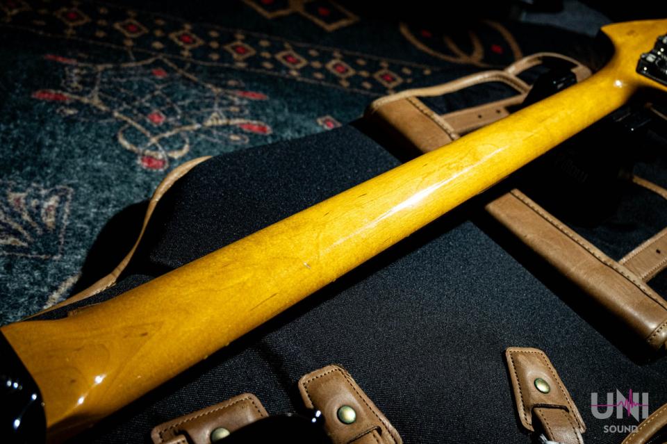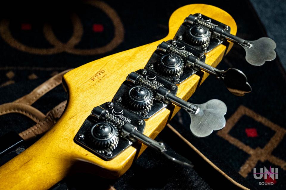 フレット溝にスタッド痕が確認できることから、もともとはフレッテッド仕様だった個体と思われます。現在は指板面にサテン調の塗装が施されており、フレットレスとしての保護と実用性が確保されています。
