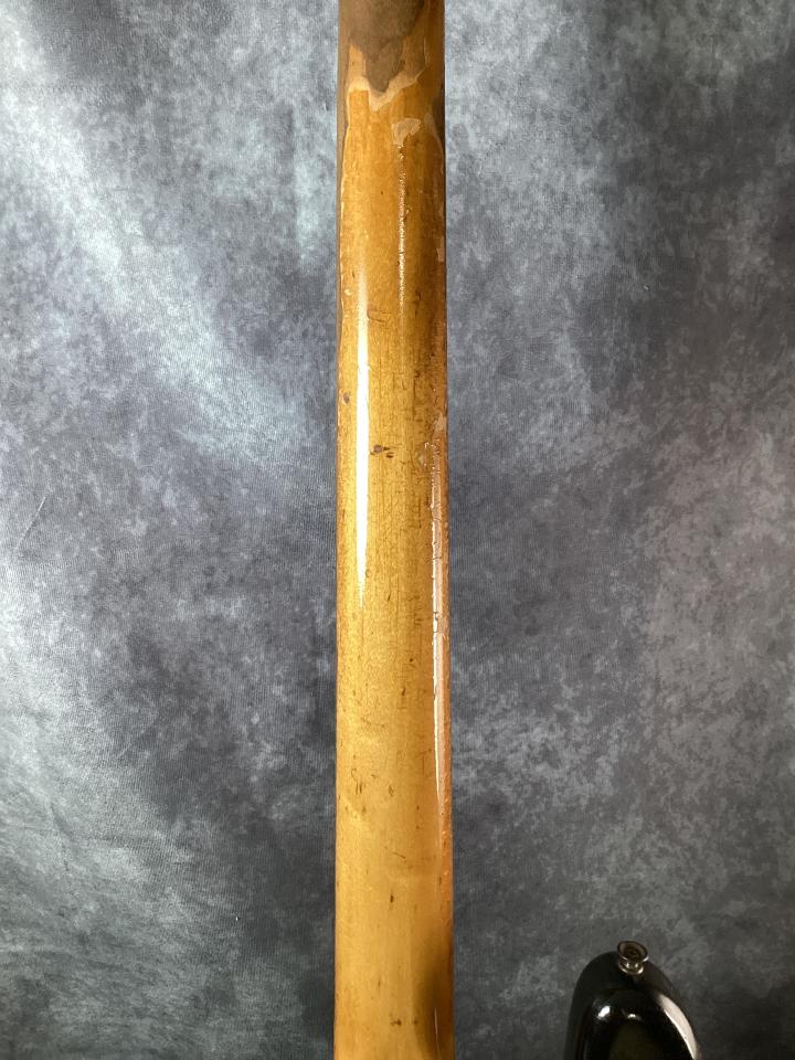 全体にヤケやキズ、塗装ハガレが見受けられますが70'sの雰囲気が色濃く出ておりヴィンテージながらガシガシ弾いて頂きたい1本です。