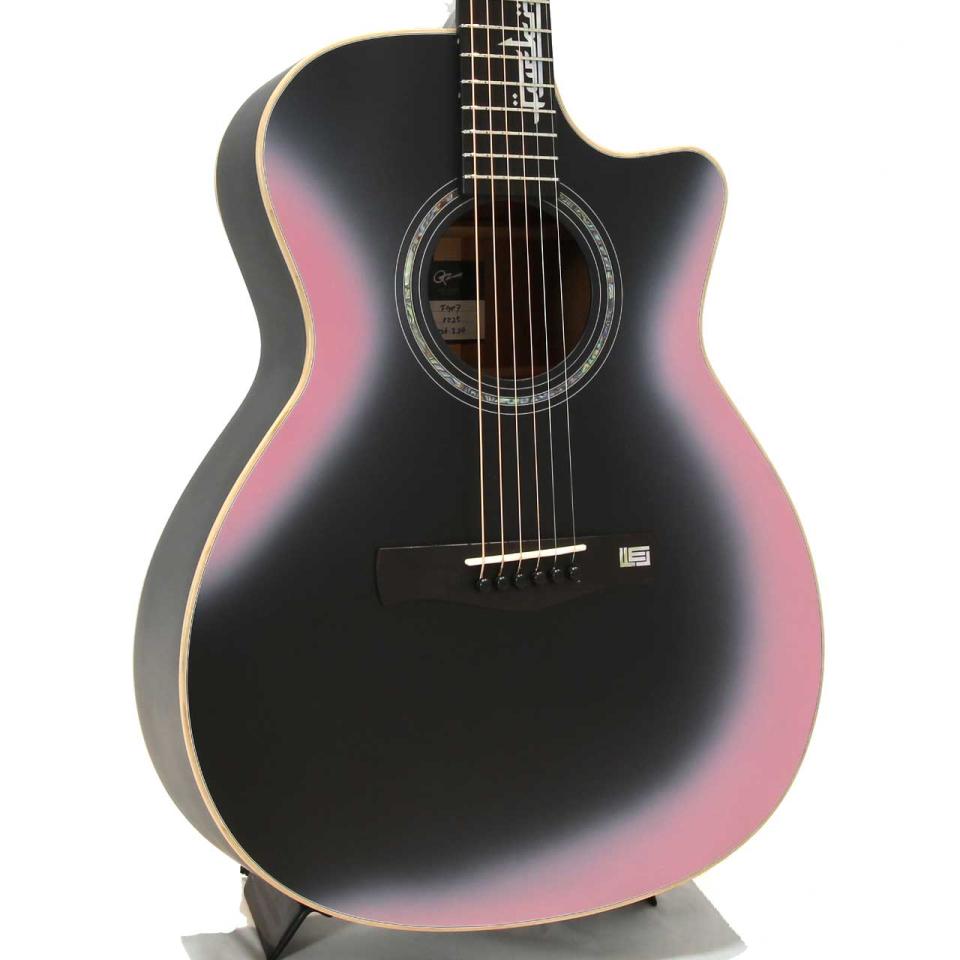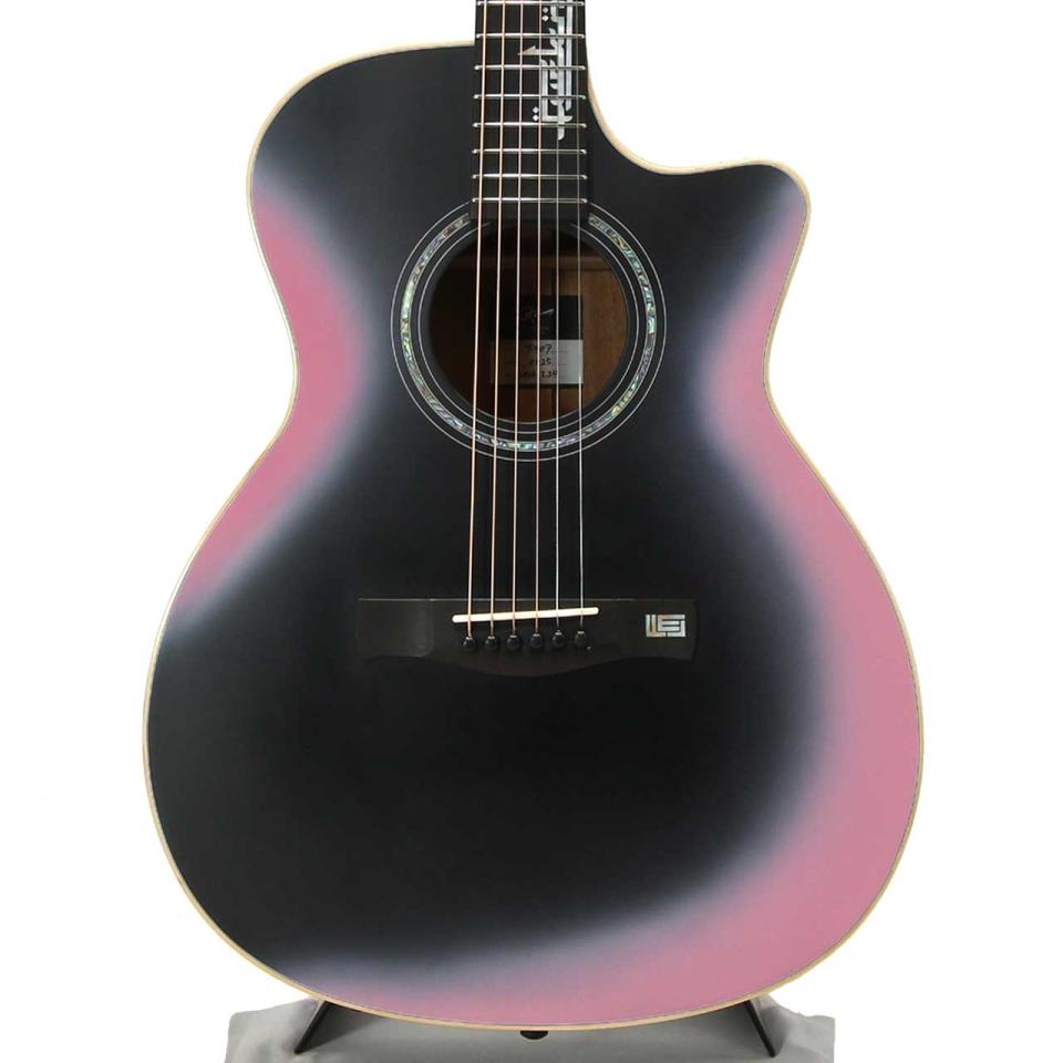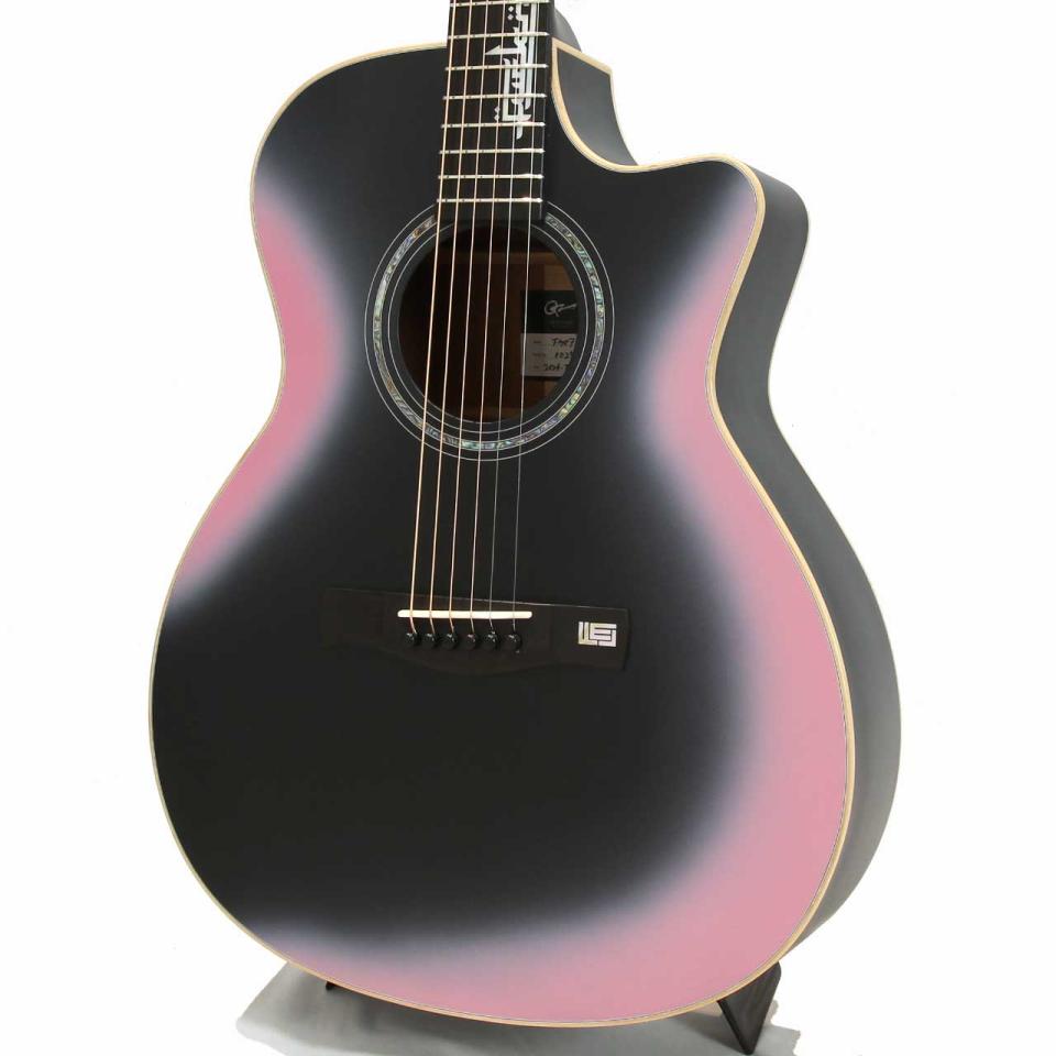 ボディのブラックはマット加⼯で統⼀され、それを囲うように曲線に沿ってピンクのグラデーションが溶け込むカラーリング。また、ピンク部分のみにツヤ出し加⼯が施されており、これがマットブラックと相反するコントラストを⽣み出し、プレイヤーの個性をさらに引き⽴てる唯⼀無⼆なギターへと昇華させます。
