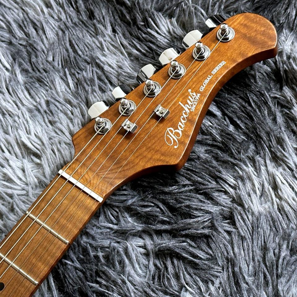 ROASTED MAPLE(RSM)シリーズローステッドメイプルとはメイプルを高温で加熱処理して材の中の水分や油分を揮発させることにより剛性を高めた材。ネックに使用されるとその効果は安定性だけでなくサウンドにも及び、豊かな生鳴りと経年変化したビンテージのようなこなれたトーンを生み出します。高級機種で使われることの多いこの本格派仕様をリーズナブルな価格帯に落とし込んだBacchusの新しい製品ラインナップです。