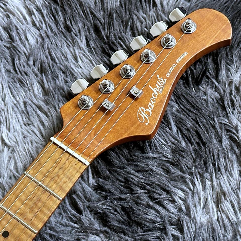 ROASTED MAPLE(RSM)シリーズローステッドメイプルとはメイプルを高温で加熱処理して材の中の水分や油分を揮発させることにより剛性を高めた材。ネックに使用されるとその効果は安定性だけでなくサウンドにも及び、豊かな生鳴りと経年変化したビンテージのようなこなれたトーンを生み出します。高級機種で使われることの多いこの本格派仕様をリーズナブルな価格帯に落とし込んだBacchusの新しい製品ラインナップです。