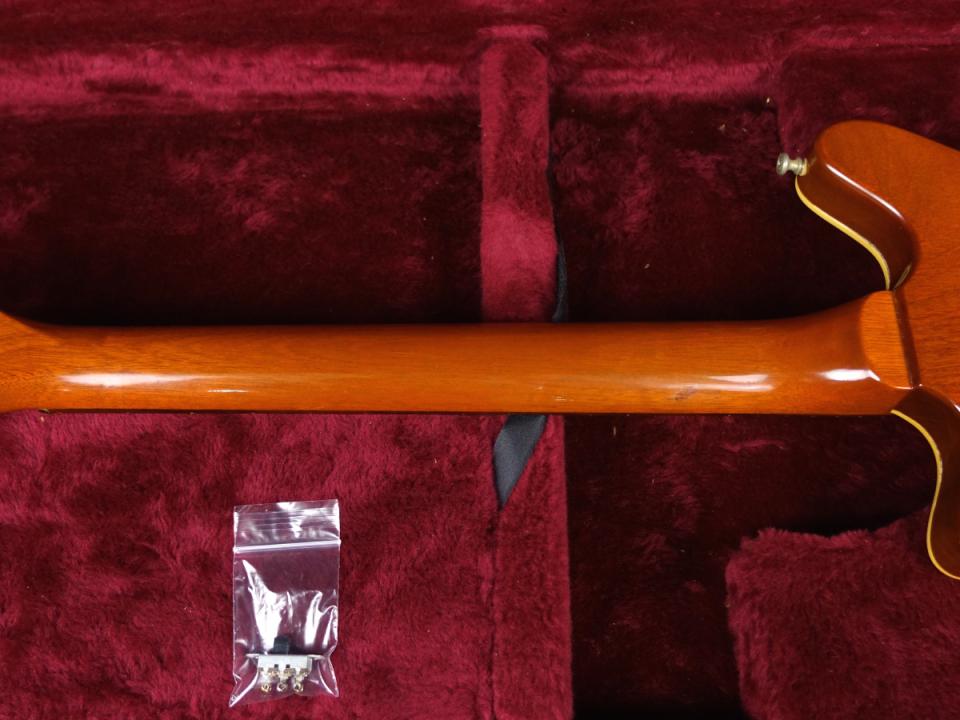 製造から30年以上経過している楽器ということでネック裏の塗装剥がれによるタッチアップ跡、打痕、ウェザーチェック等が全体に散見される他、目立った箇所ではくびれの強い箇所を中心にボディバインディングの剥がれが見受けられるなど、著しく外観や演奏性を損なうようなダメージは見受けられないものの、年式相応に使用感が感じられる外観コンディション。