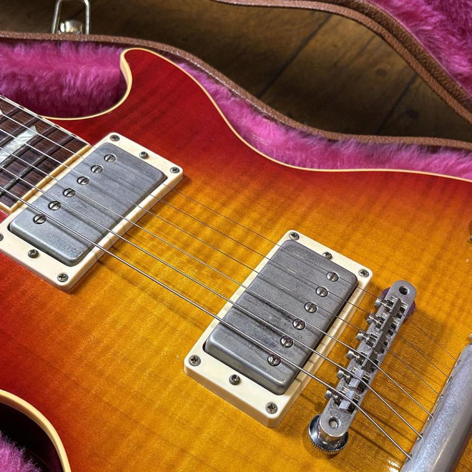 世界的なオリジナルレスポール熱の高まりによって1983年に発売された「Gibson Les Paul Reissue」。杢がとてもバランス良く、王道のヘリテージチェリーサンバーストとも相まってまるでレスポールのお手本のような素晴らしい外観です。