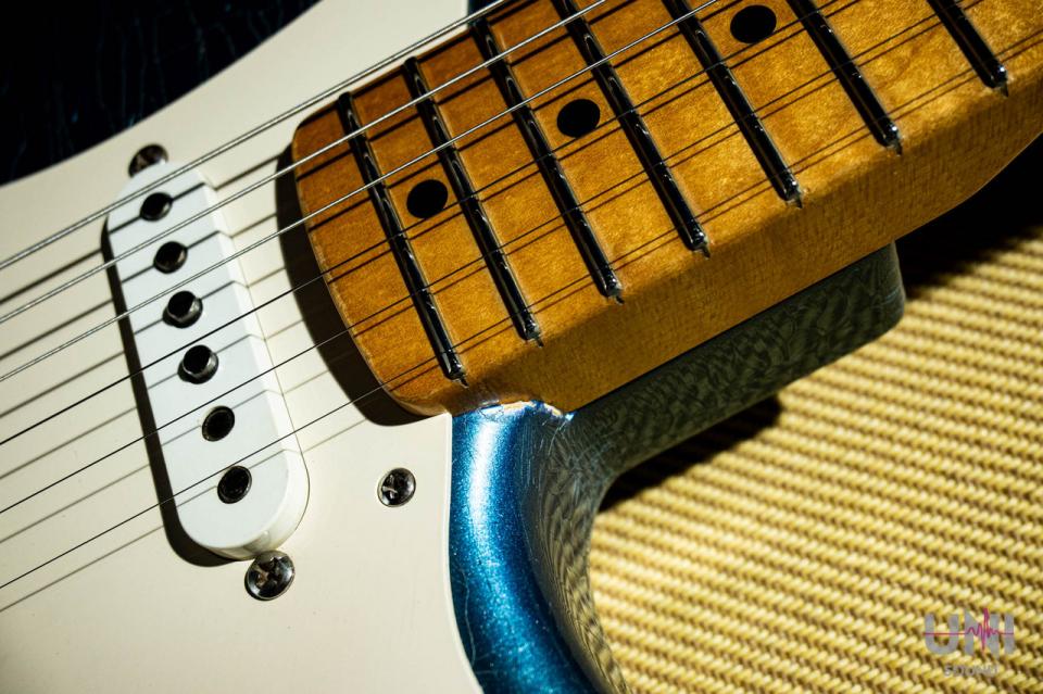 ローズ指板のストラトとは明確にキャラクターが異なる、王道のメイプル指板ストラトサウンドです。
