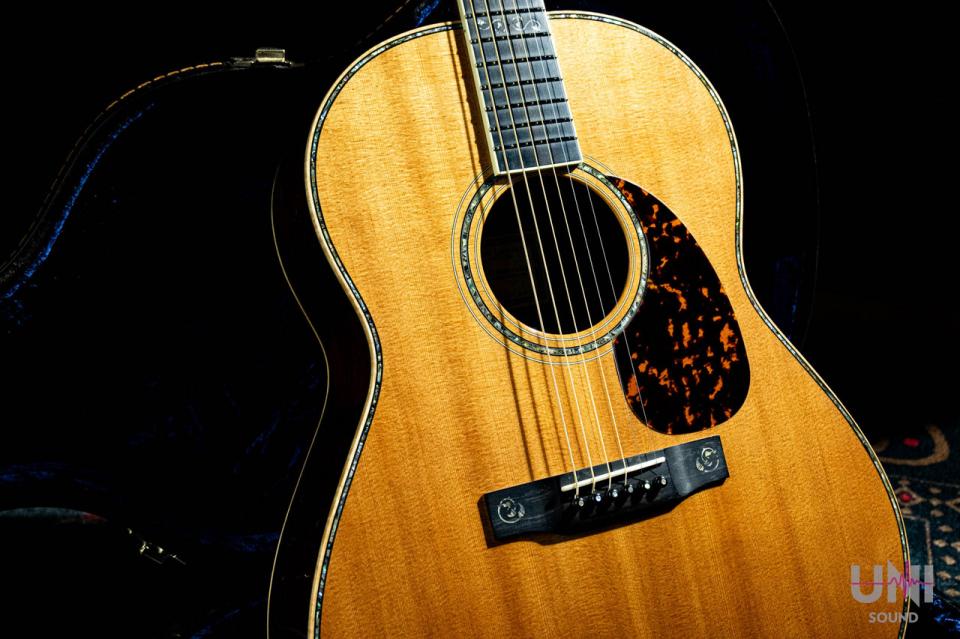トリプルオーサイズより少しい大きいですがドレッドノートよりは小柄なボディが特徴。