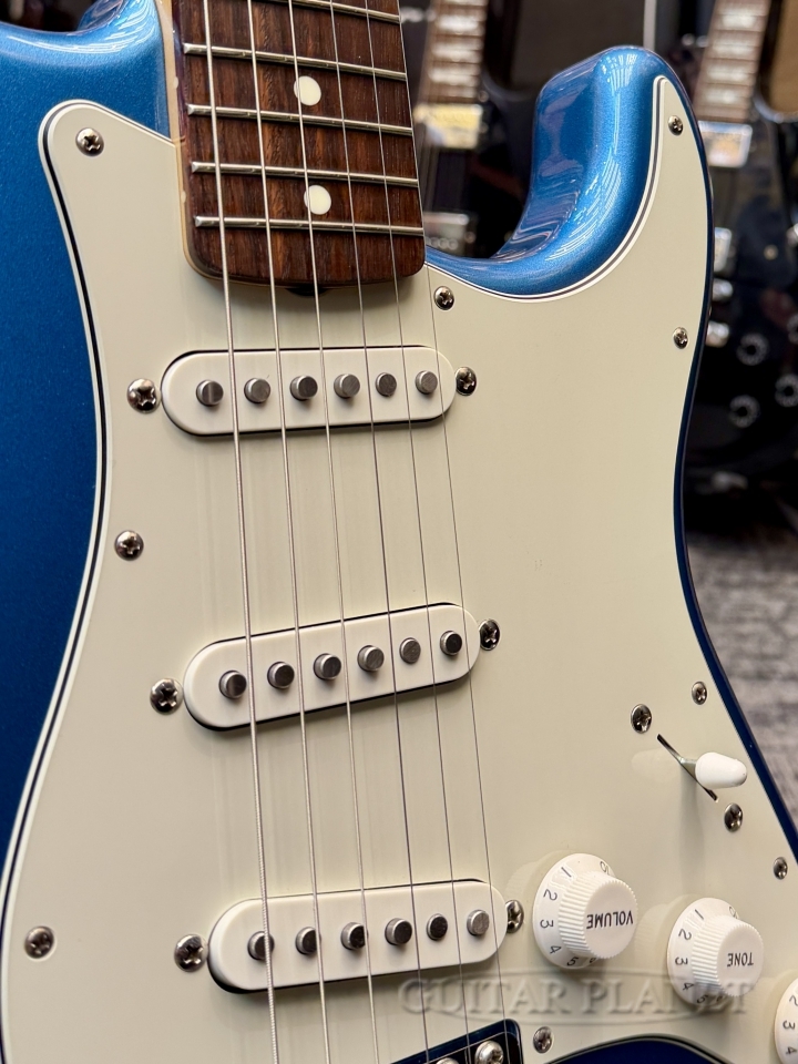 色鮮やかなメタリックカラーのLake Placid Blueがローズウッド指板に良く映える人気仕様の品です。