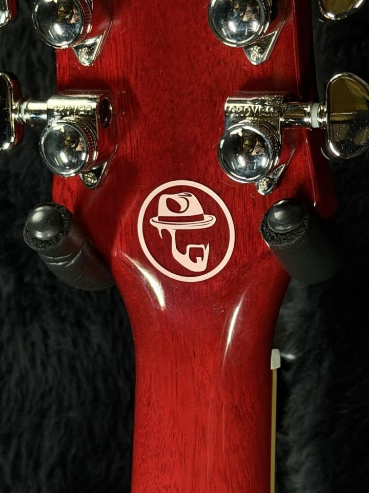 5層のレイヤード・メイプル・ボディの上面には、化粧板として美しいAAAフィギュアド・メイプルが貼られ、60’sチェリーのカラーで仕上げられています。