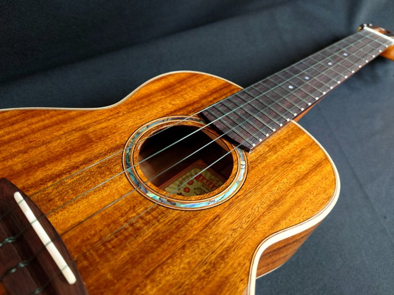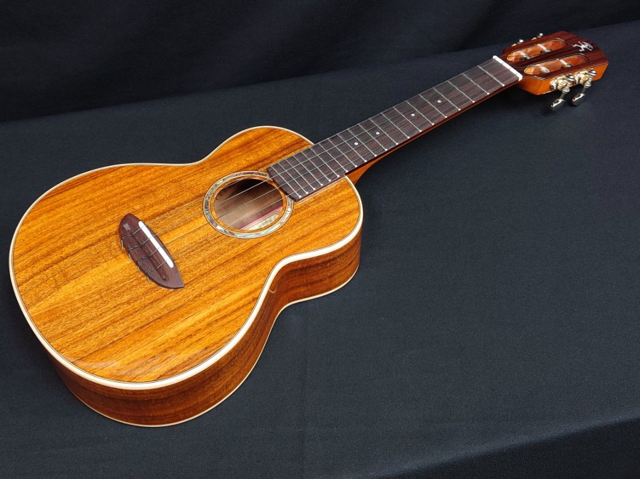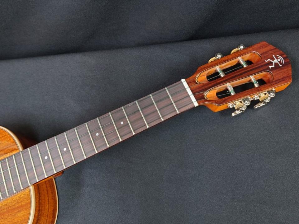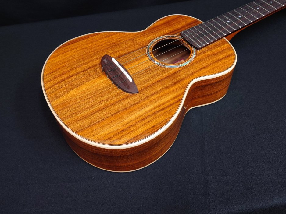 ハワイアンコアに近い特性を持つ台湾産のアカシア材単板を採用したコンサートモデルです。