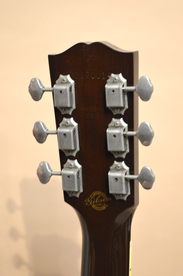 楽器のコンディションは小キズこそ散見出来ますが、キズの類は少なめでまずまずの美品コンディションと言えるでしょう!この年式のギブソンに付きもののウェザーチェックが少ないのも特筆すべき点かと思います。ヘッド・トップにうっすらとウェザーチェックが確認出来ますが、ボディーやネックにはほとんど確認出来ず、保管状況が良かった事が窺えます。ギブソンのウェザーチェックはアレはアレで渋い貫禄ではありますが、、まぁ無いに越したことはないですよね(笑)。小さな打痕や擦り傷、ネック裏にも擦ったようなキズがいくらかありますが、トータルで判断すれば、この年代のギブソンにしてはかなり綺麗な状態と言えるかと思います。このモデルならではのニック・ルーカスの姿が印刷されたボディー内部のサークル・ラベルも綺麗に残っています。
