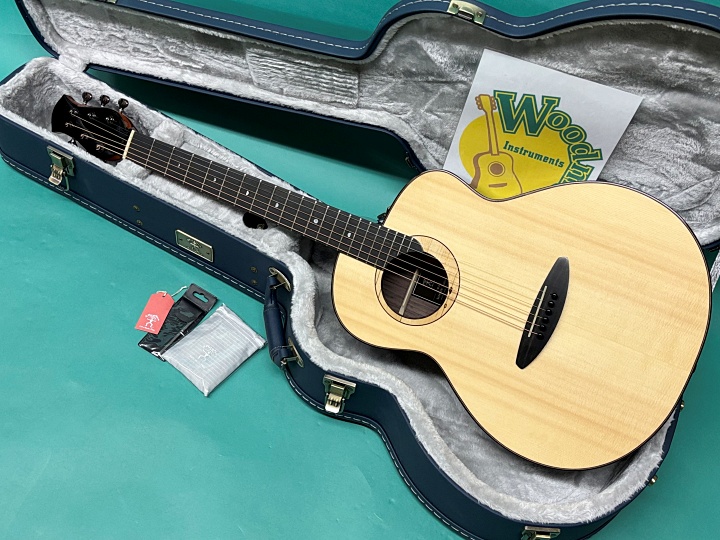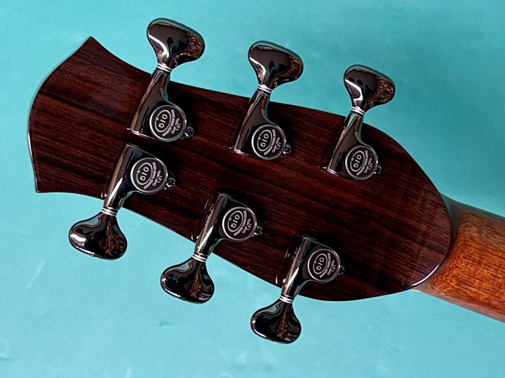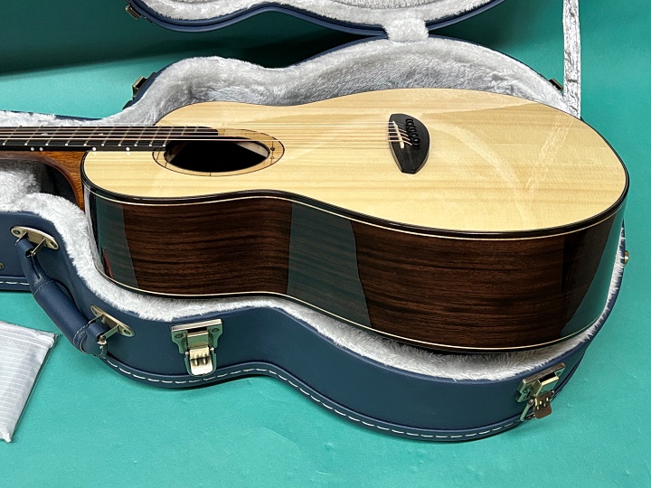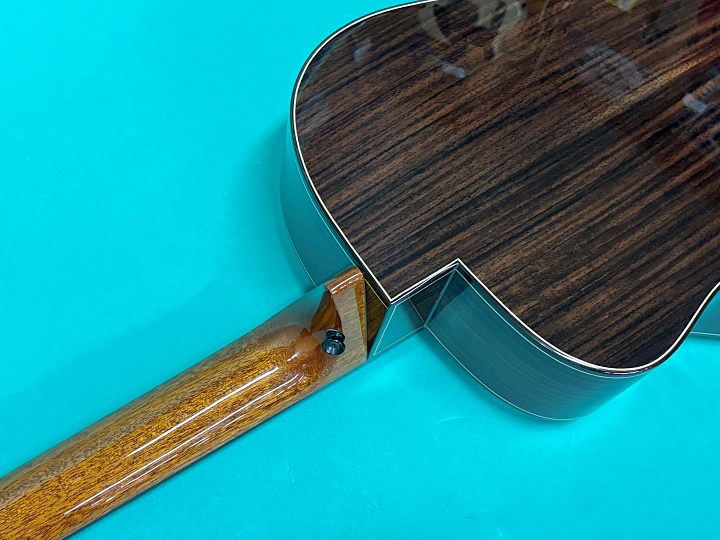 トップはスイス産のムーンスプルース、サイド&バックにはインディアンローズウッドを使用した総単板仕様で、ネックはマホガニー、指板とブリッジにはエボニーを採用しています。ナット幅は44mm、スケールは640mm。独自のデザインを持つカッタウェイにより、ハイポジションでの演奏性にも優れています。