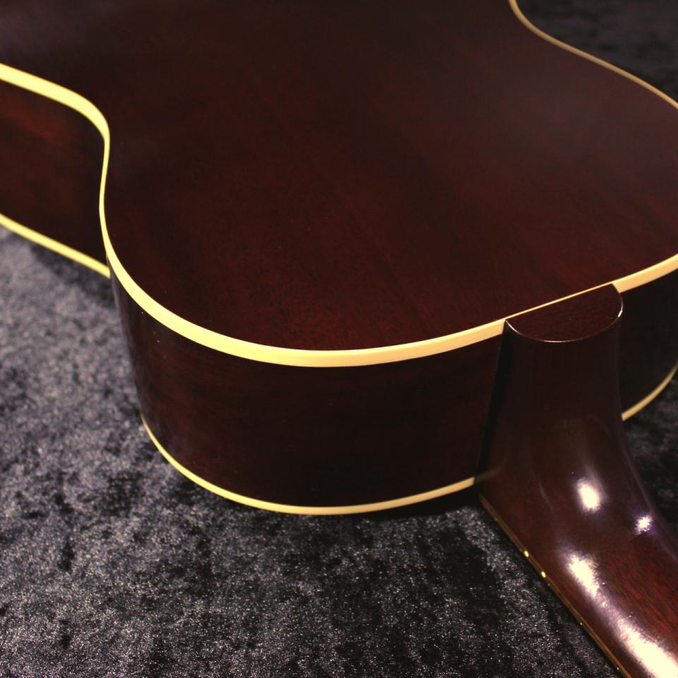 カスタムショップ製の本器はトップ材に戦前のギターに用いていたアディロンダックレッドスプルースを採用するにとどまらず、サーマリーエイジ加工も施しています。
