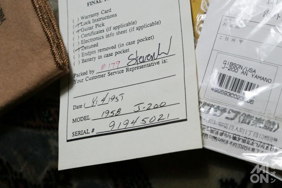 今回はその1958年の仕様を採用した「1958 J-200」1995年製が入荷!カラーはアンティーク・ナチュラル(AN)です。