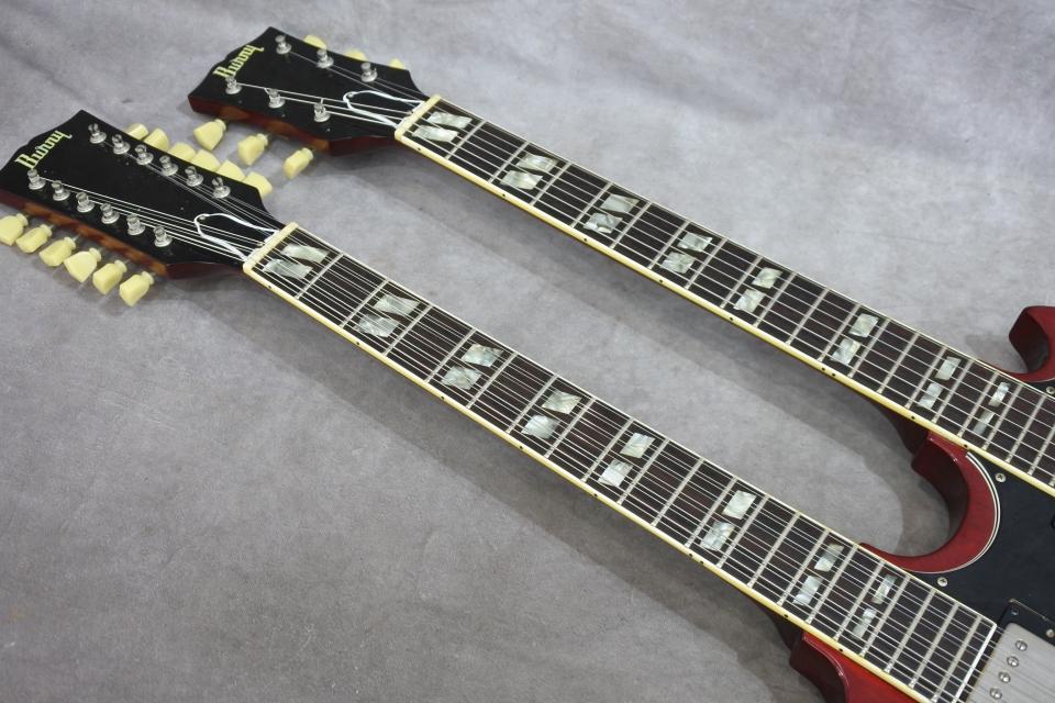 ダブルネック特有の圧倒的な存在感と深みのあるチェリーフィニッシュ。